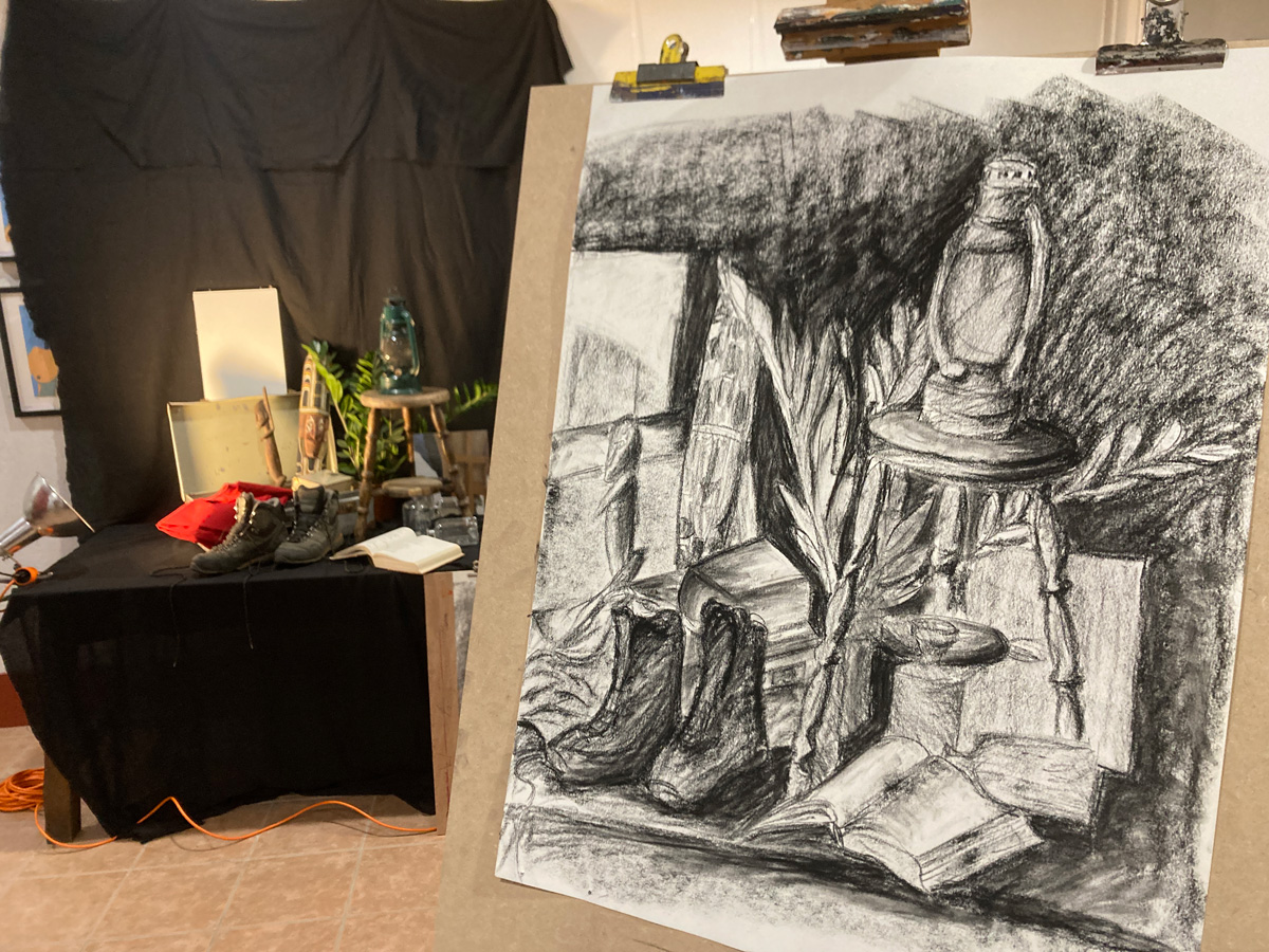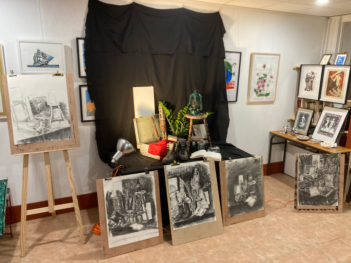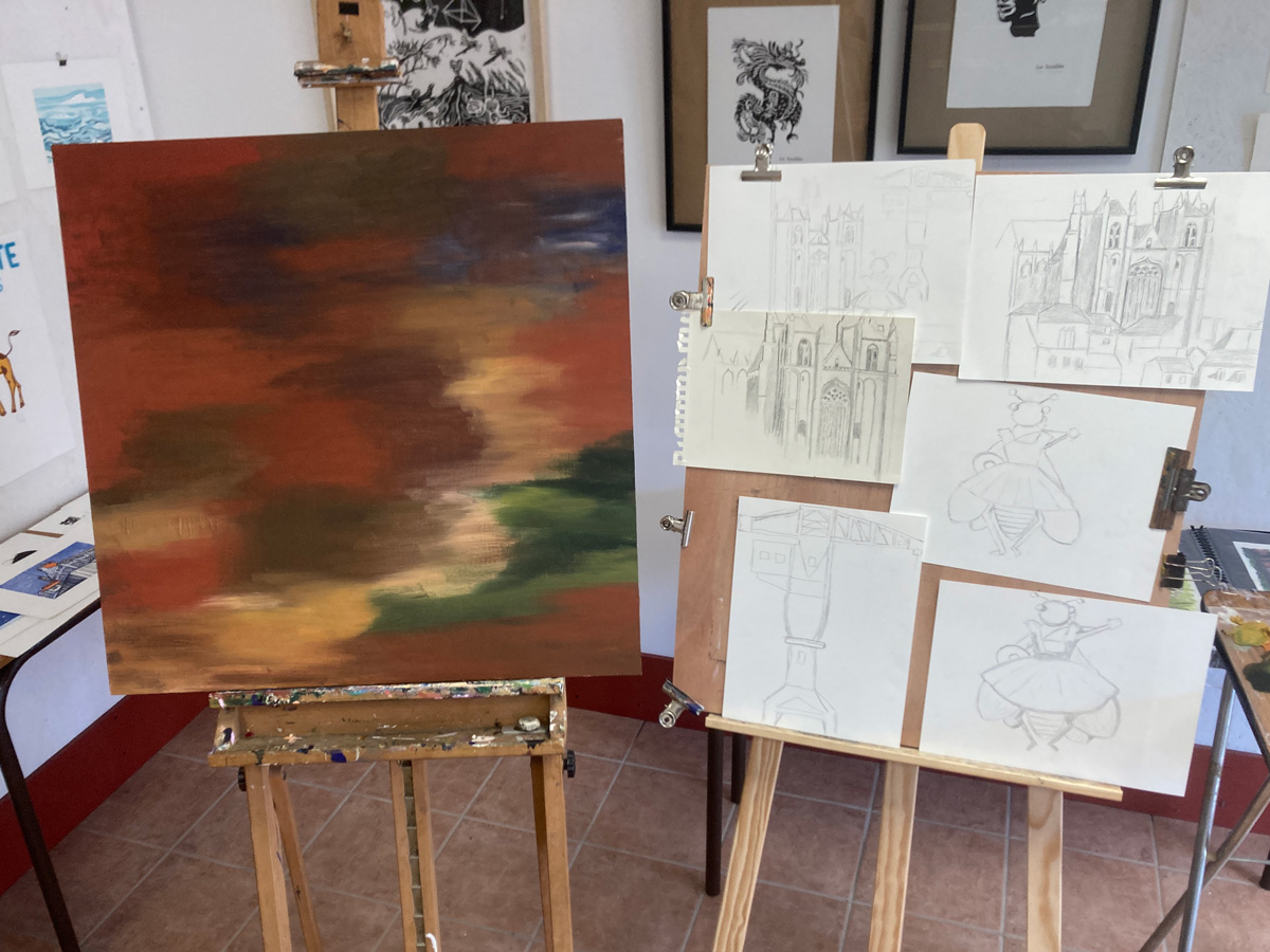 L’atelier dispose de tout l’équipement pour la peinture, le dessin, la sérigraphie et la photographie argentique.